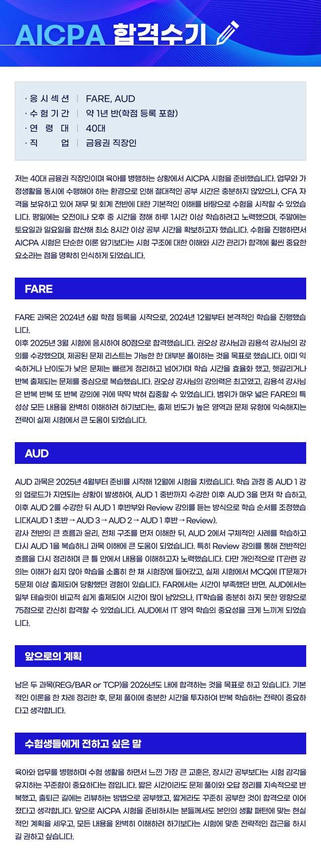 제목 [AICPA] 40대/직장인/약 18년/FAR, AUD