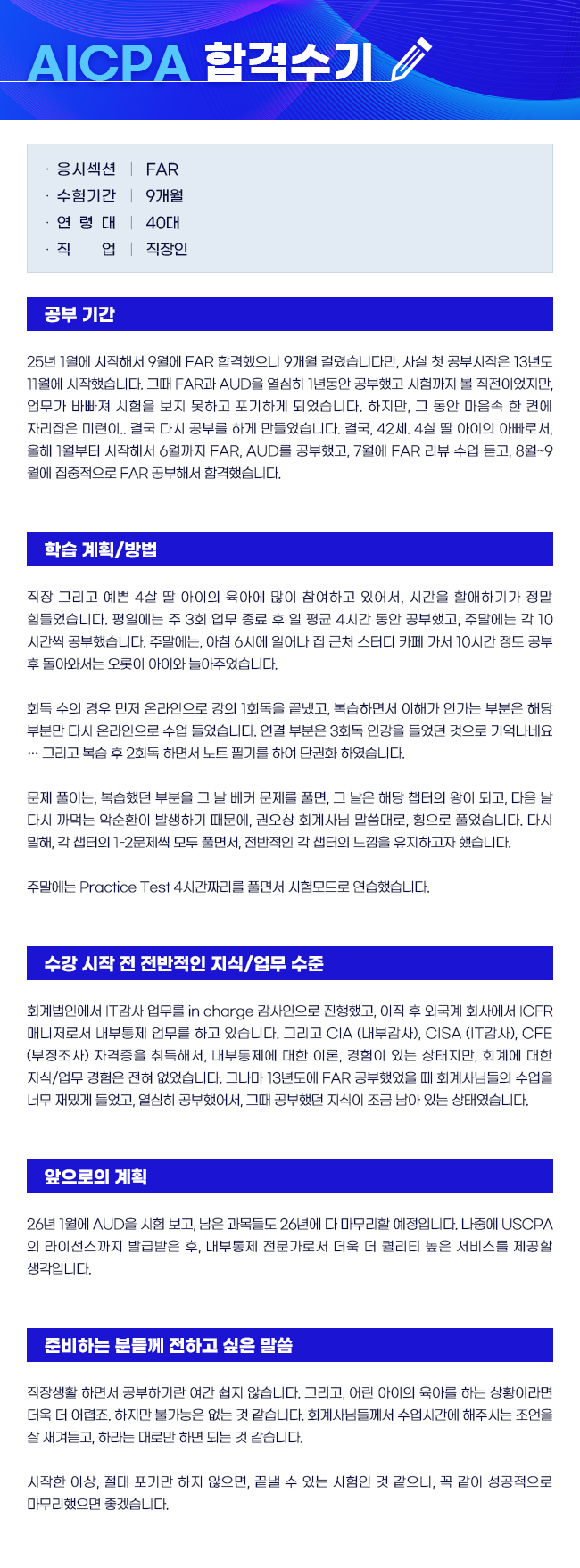 제목 [AICPA] 40대/직장인/약 9개월/FAR