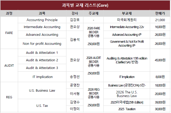 • *회계원리 수강필요 시 추가옵션에서 AP선택 / 선택과목(必) : BAR,TCP,ISC 中 택1