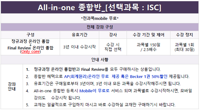 • 혜택 * 전과목 모바일 무료 / 선택과목 : ISC(ISC는 리뷰과정이 없습니다.)