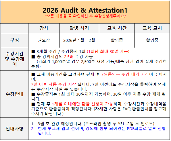 2026 Audit & Attestation 1 [권오상] |
