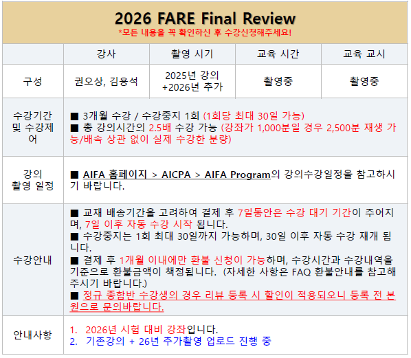 2026 FARE Final Review [권오상,김용석][1~2월] |